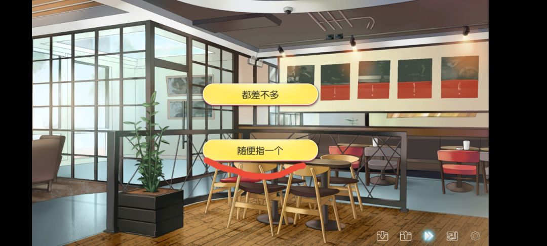 刚开始游戏一小段后,会在餐馆触发关于认为内格夫和SOP两人谁更可爱的选择,在这里先选择第一个选项。这个选项触发往后的M4线,MP5线,SOP线的选择。