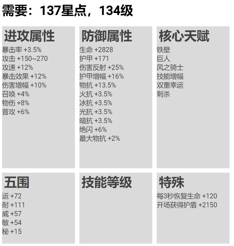 135级星图 ,剩下15级 可以根据需要 补充CDR 免伤 或者闪避 最终还能补出5%物抗 5%免伤 3%CDR 或者选择6%闪避也可以