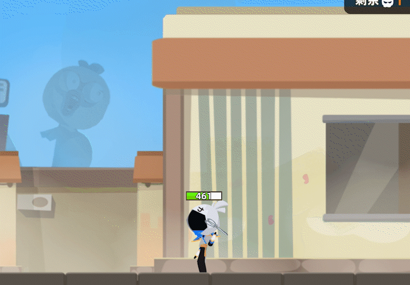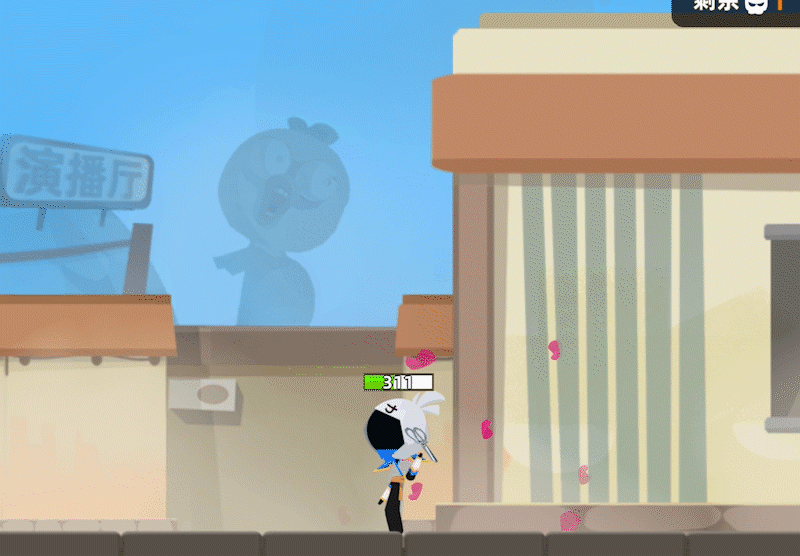 扳手追击:此技能在李小花生命值较低的时候会频繁出现,在完成闪现后,李小花对前方造成大范围攻击,伤害300点,需要操作阿宅多次闪避才可躲开。