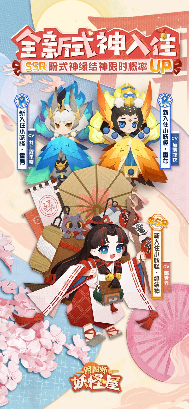 全新SSR阶式神缘结神携R阶式神童男、童女入住妖怪屋,新春召唤概率UP等你来!