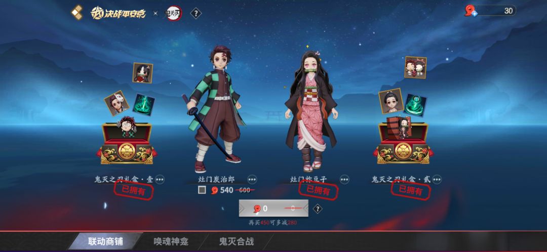 炭治郎白嫖抽到了,妹妹直接买。话说,咱已经有了炭治郎了,再买个炭治郎会变50碎片嘛