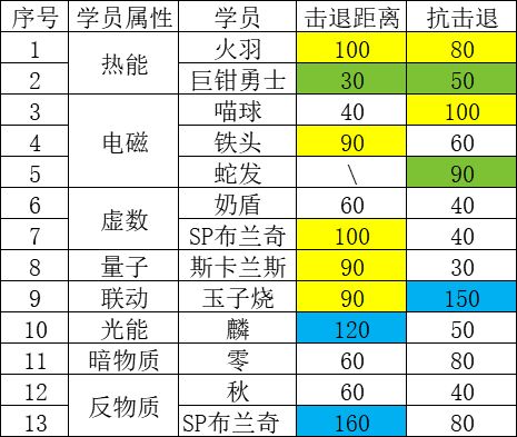 最基本的道理,刨除技能的因素,光看基础属性,只要一方的最终击退距离>对面前排的抗击退数值,就能压缩对面的队伍阵容,然后愉快的AOE。这就是本次新SP布兰奇最核心的卖点。话不多说,大家自己看表格