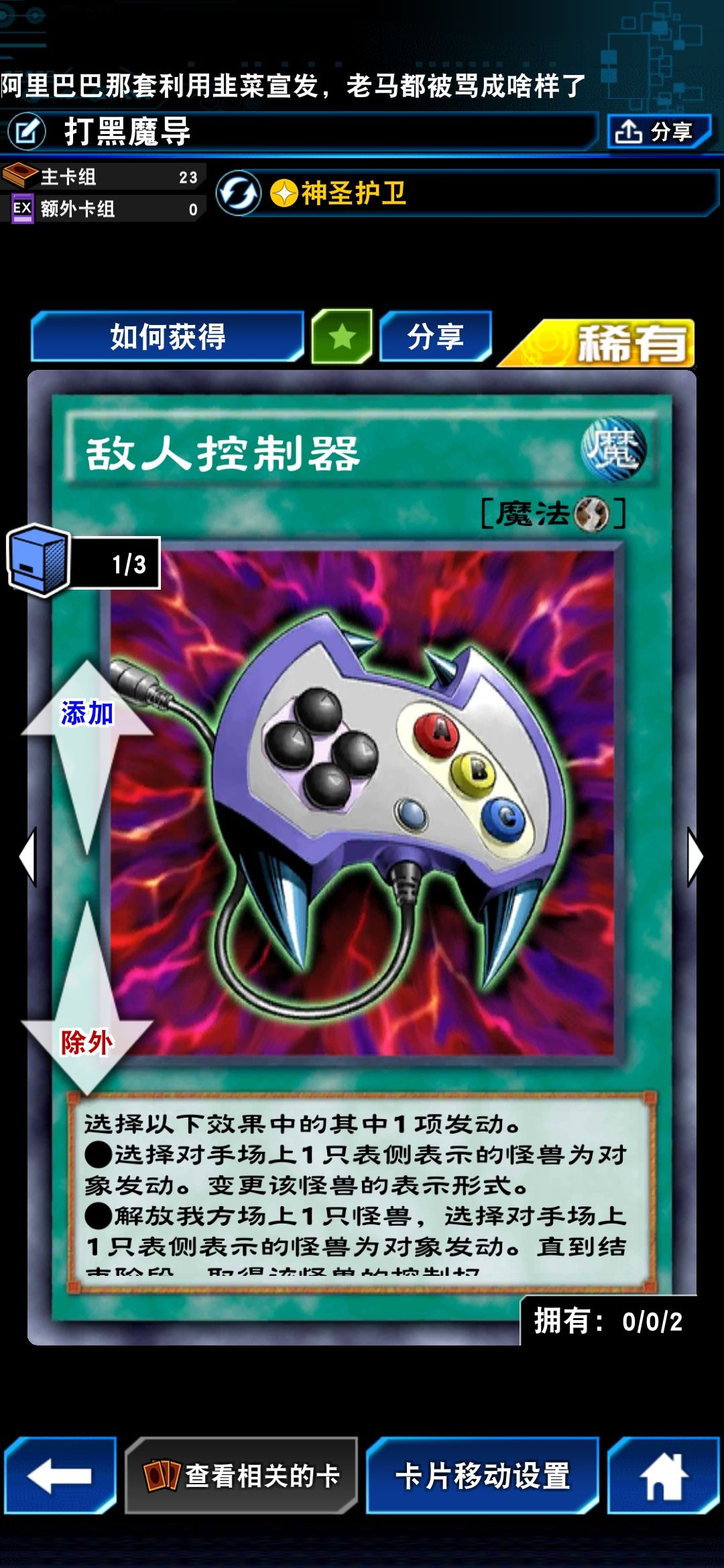 至于敌人控制器的意义,在于用第二个效果解放我方一个怪兽位置,拉黑魔导过来玩一玩,下回合空出位置继续再上一个小黑,