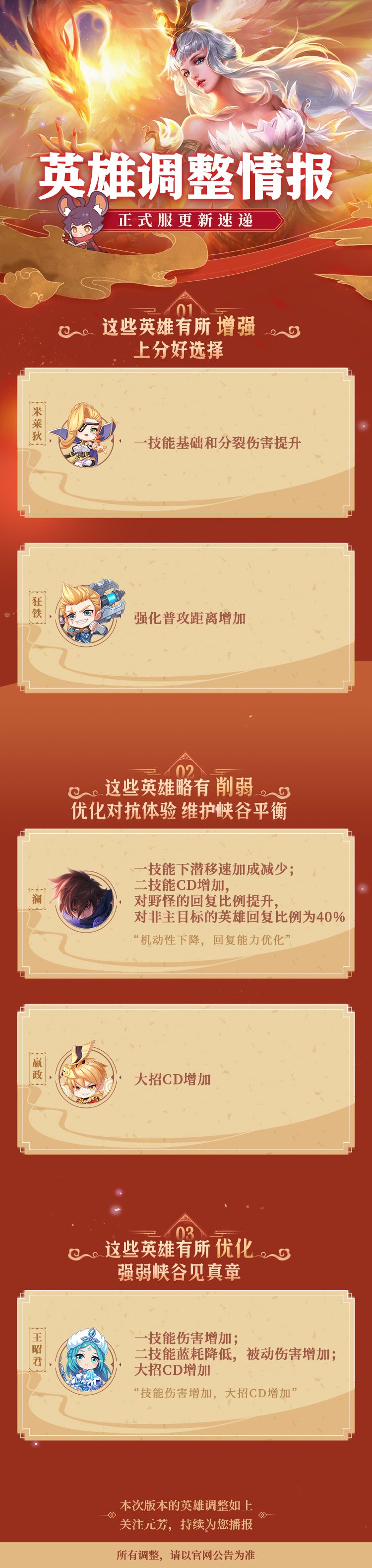 本次版本的英雄调整如上,关注元芳,持续为您播报。