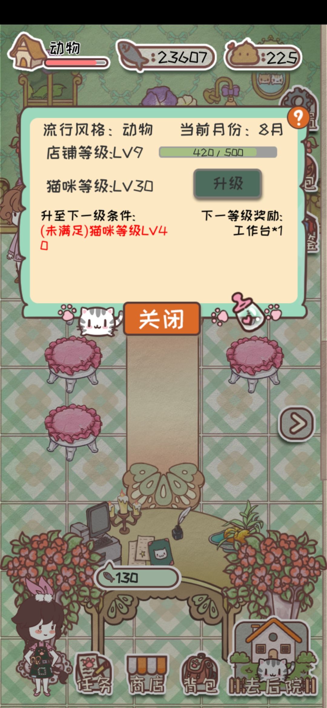 猫咪要怎么获得呀?店铺都9级了,但是还只有三只猫咪。游戏提示说店铺升级会送,但是一直是三只呢?
