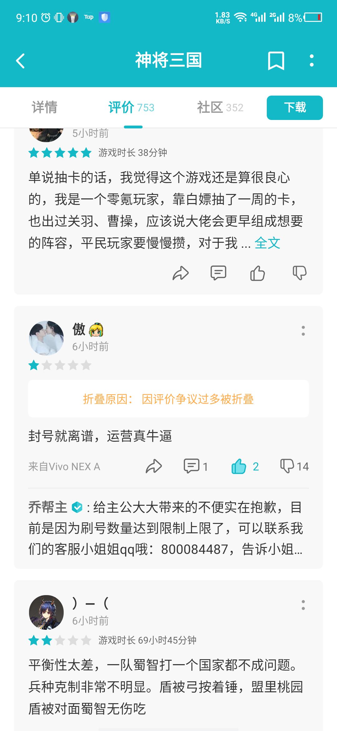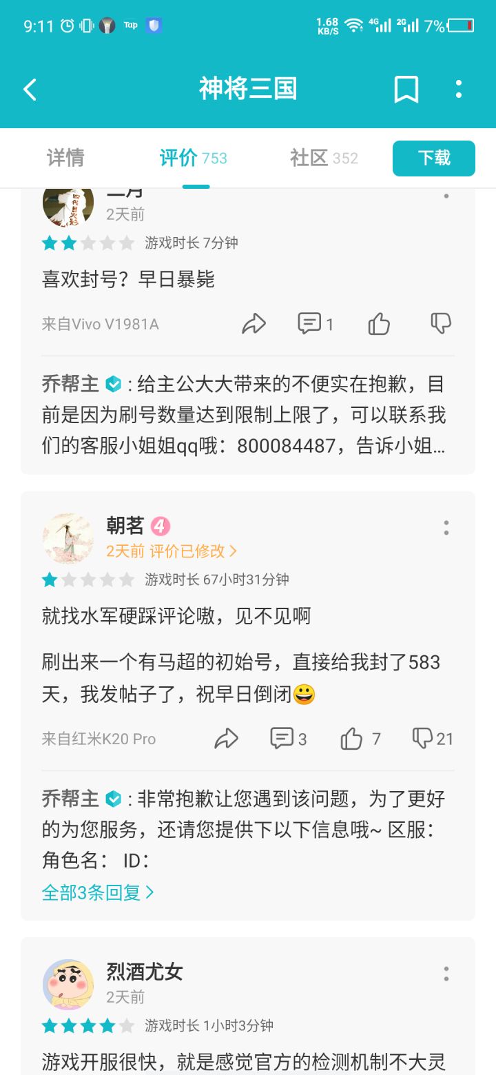 看一下嘴脸奥,所有反应真实情况给分给的低的,全部都被人硬踩一顿,且不说评论底下有多少游戏托在洗地,你如果被封号了,官方建议你换手机。