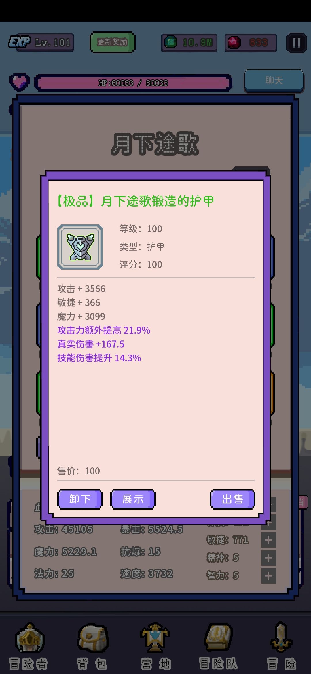 不用在意幸运啥的因为你不一定是欧皇,所以随便加,前期加点堆敏捷,攻速好了里面的历练速度就快,前期不用过图第一张图碰到十级左右怪就可以回到开头了,等级进度不影响历练经验,就这么肝到100级,每15级做一身白装就行有更好的最好,其实无所谓,主要还有主城的挖矿攒碎片为最后通关攒材料做装备下面提供我的垃圾装备图片和属性