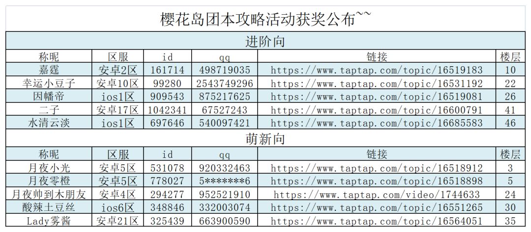 这次的进阶向和萌新向攻略获奖的主如上~~~但是收到春节影响,发放奖励的时间会延后,大概在25号左右会进行发放~