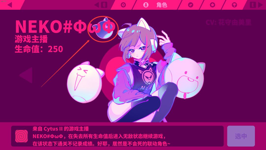 Muse Dash在2月5日更新了新角色游戏主播NEKO#ΦωΦ,这个角色的技能是没血之后会进入无敌状态,是一个不死的角色,官方还隐藏了一个能让NEKO死亡的彩蛋。
