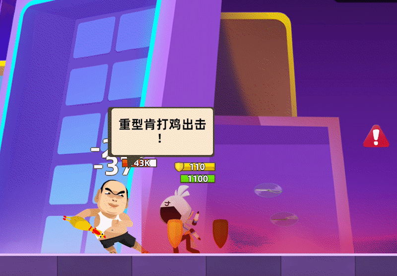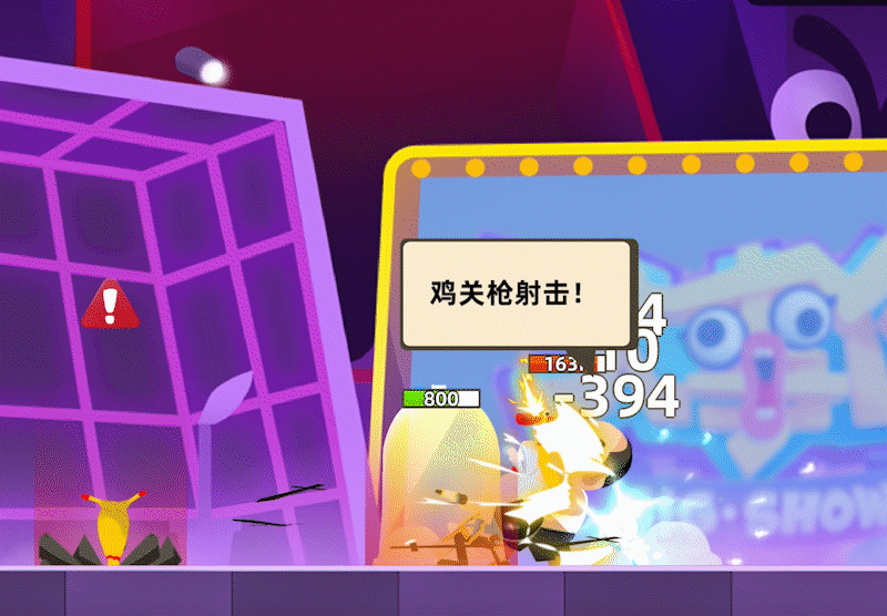 与其他Boss相同,唐马儒在生命值降低后,会进入狂暴状态,具体表现为鸡关枪射击的次数变多,释放频率加快,更加难躲,且有可能遇到鸡关枪射击与重型肯打鸡的合体技能,比如这样: