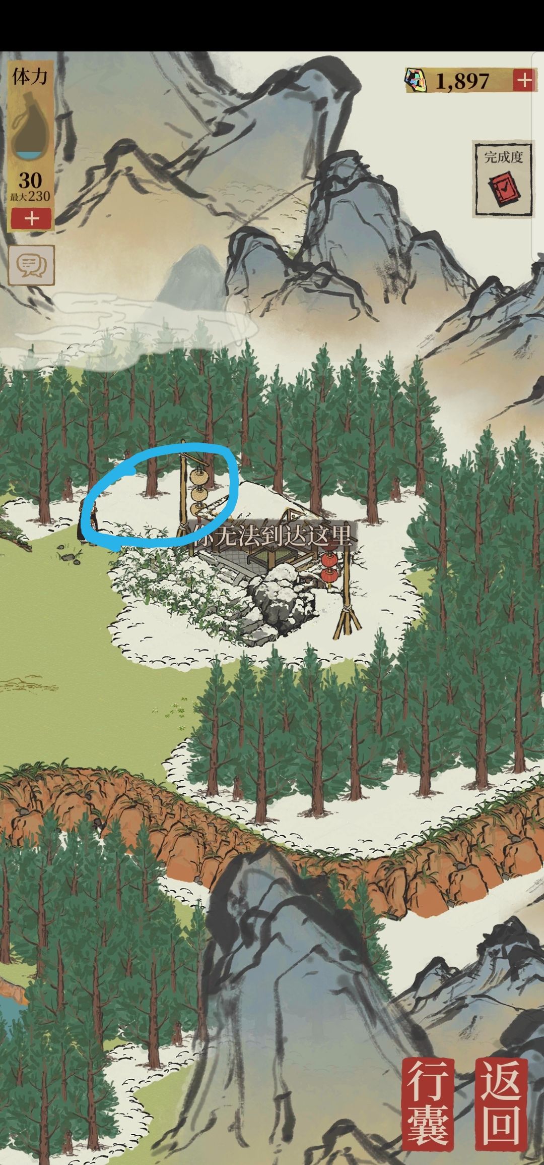 钥匙参考位置:雪屋,在地图的最右上角,由于钥匙点了就没了,我不小心点了一下,位置就在我画的篮圈里面