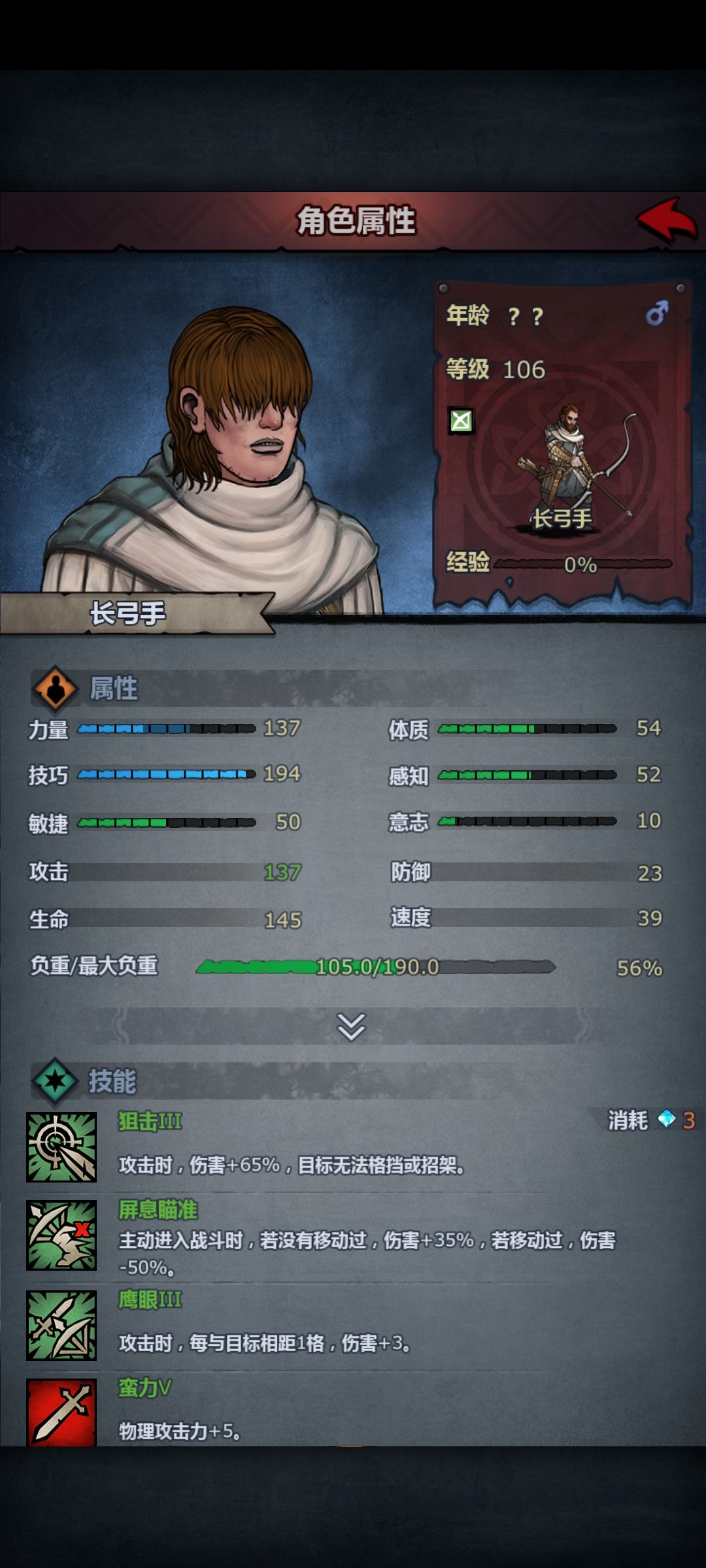 如图长弓有190+的技巧,闪避屠骑稳定闪避