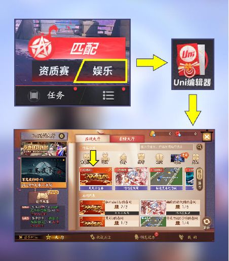 《决战!平安京》Uni对战平台,包括海量原创游戏,玩法多样,创意无限!防守、塔防、RPG、文字冒险、休闲对抗,各类型玩法数不胜数。使用Uni编辑器,可自由创作属于你的手游作品,上传Uni对战平台,还可获得真实收益! 心动不如行动,快来试试吧!