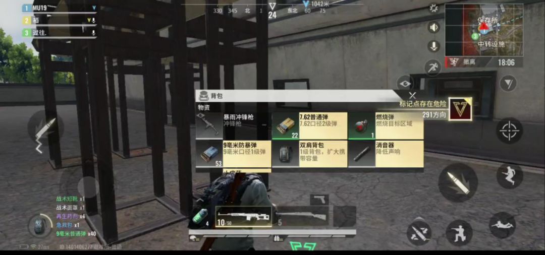 如上图所示,我开局并没有选择直接去大型建筑搜刮,而是围绕三号点,搜刮附近的小房子,目的就是避免在自身还没有合适的枪支的情况下,去和敌人进行遭遇战白给,而且经过几个小房屋的搜刮,已经初步具有一定战斗力了。