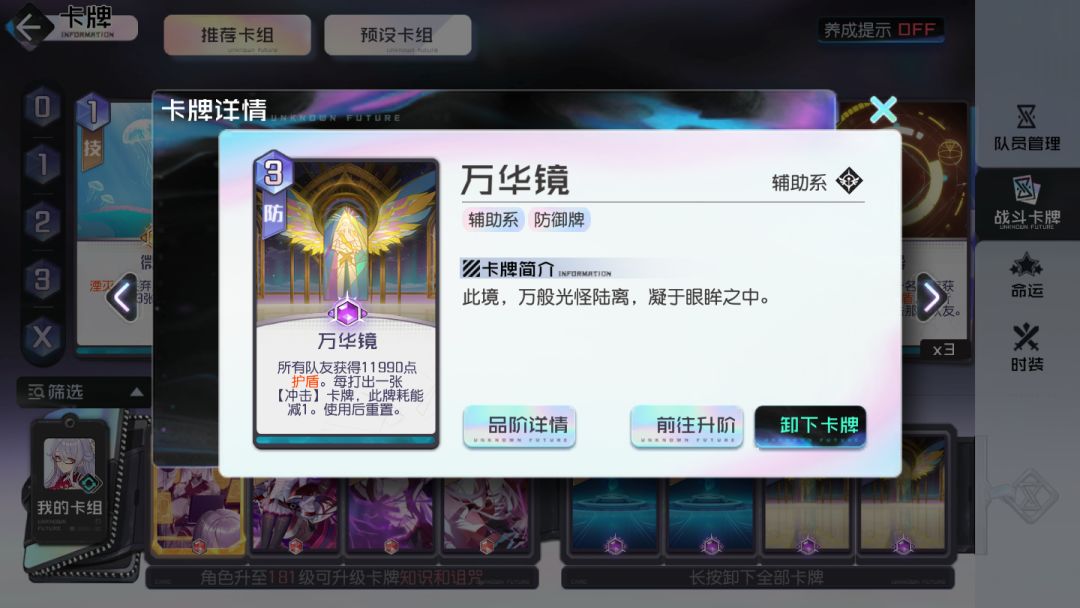 支援系的【万华镜】配合能量系的冲击卡牌效果非常好。使用万华镜进行辅助搭配不仅可以让队伍整体的防御能力提高,更可以保留能量点进行输出&嘲讽。