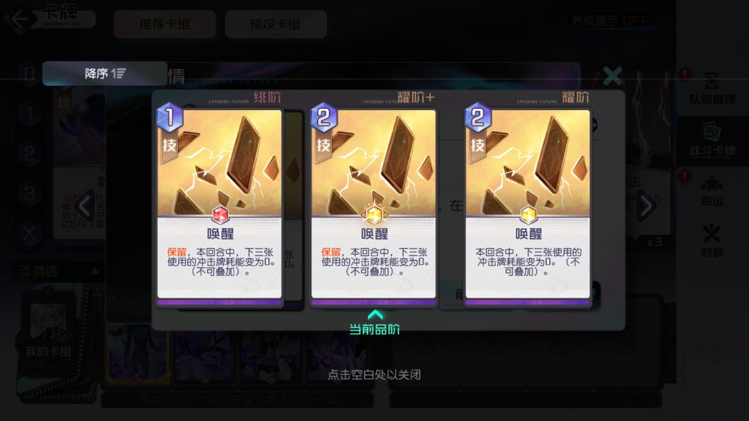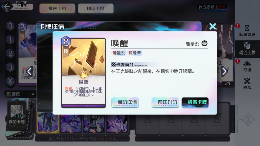 其中,唤醒是一张彻底改变黑潮四大职业体系排名的神卡,它可以将能量系的3张冲击卡牌在本回合以极低的耗能打出。