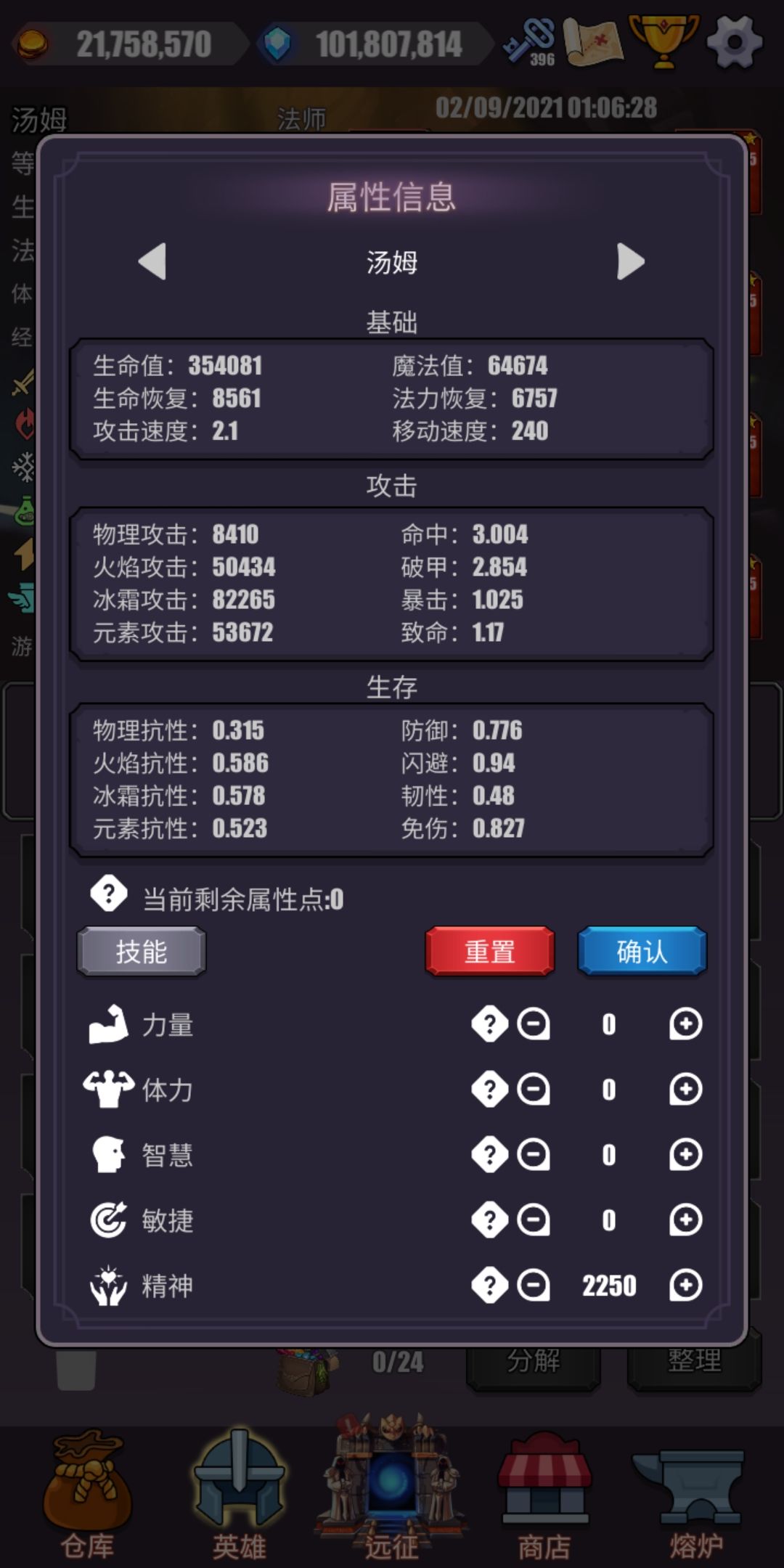 4.毕业面板如上…战士攻速4后堆力量,刺客破甲2后堆敏捷,牧师体智敏都行(我选择了全智力,高防的同时做好献祭工具人),法师全精(炮台工具人)