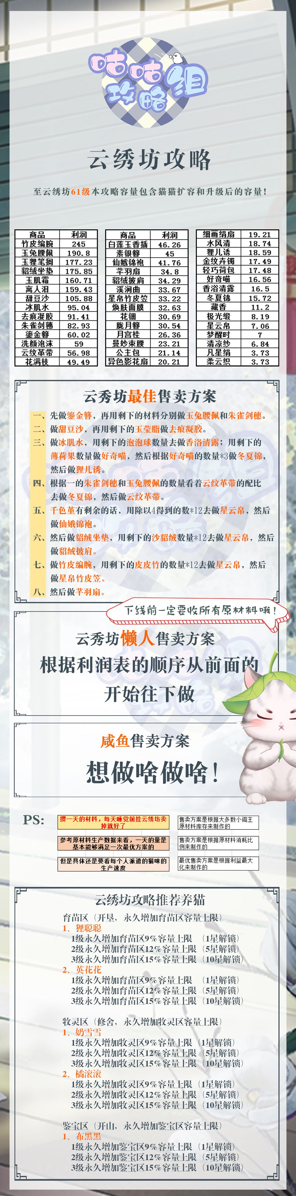 ❗ 另外云绣坊等级未达61的小阁主可参照懒人售卖方案进行售卖,如果想使用最佳方案的可在攻略组微博主页搜索云绣坊,进行查找