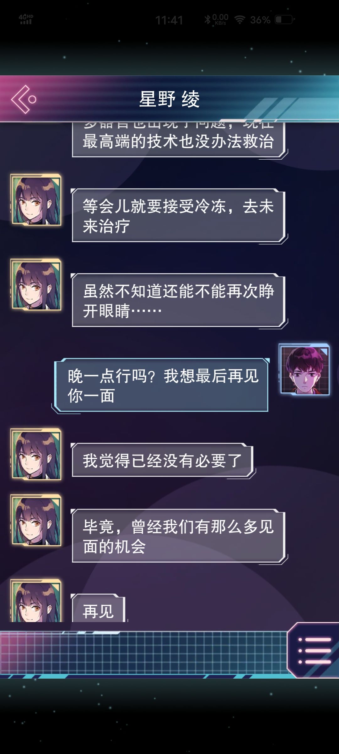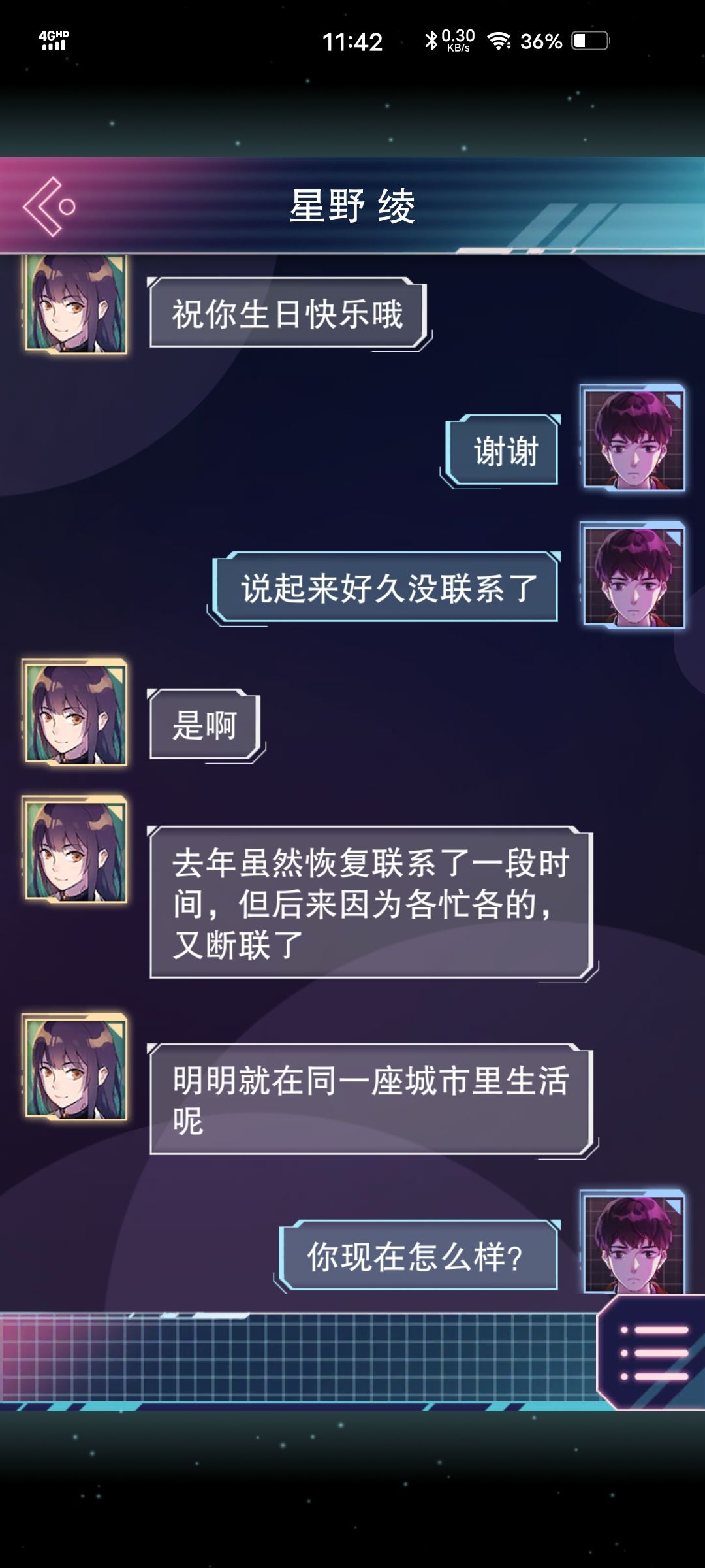恭喜达成成就“独行”,我看新野的剧情挺多的,应该就是女主了,我也跟她认真的保持关系,但是跟那个AI啊女土豪啊随便聊聊就好感提升,但是没想到生日那天...一切都太快了,如果没猜错应该是去不去古董店那里命运发生了改变吧,我还认真的攒了钱准备给她治疗,可她啊啊啊啊
