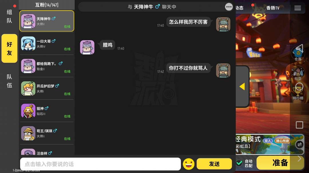 唉,今天有一个人,他跟我PK,结果我把他打了个3比1,结果我问他我厉不厉害?结果他回了一句辣鸡,我真的受不了(›´ω`‹)大家能否安慰我