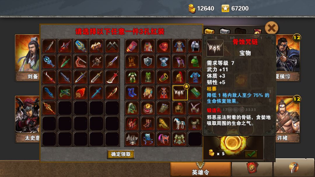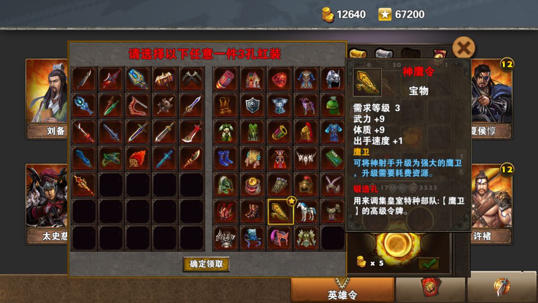 飞鹰令的加强版,前期给武力体质英雄点亮不错,关羽张飞典韦许褚。后期一般只用在升级鹰卫上。