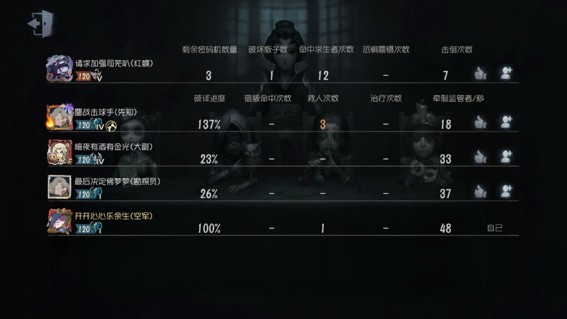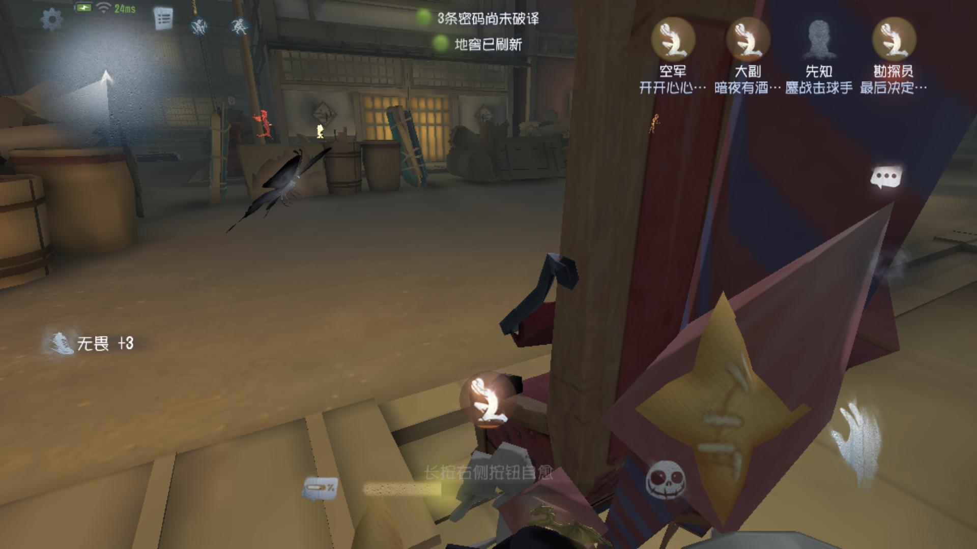 红蝶追我,我开枪了,红蝶传送勘探秒倒能理解,这大副明知红蝶在脸上还不走,红蝶挂了勘探,直接2个擦刀倒了。我把勘探救下来,我倒了。勘探走出去不到10秒倒了。勘探被挂飞,红蝶来挂我。此时大副还在地上躺着。红蝶又去挂大副。先知救我,然后救大副。红蝶在我脸上我也无处藏身上椅子二挂。坐上去先知救来救我。终于舍得鸟了保护他自己。把我捞下来。我没了。大副原地又倒。
