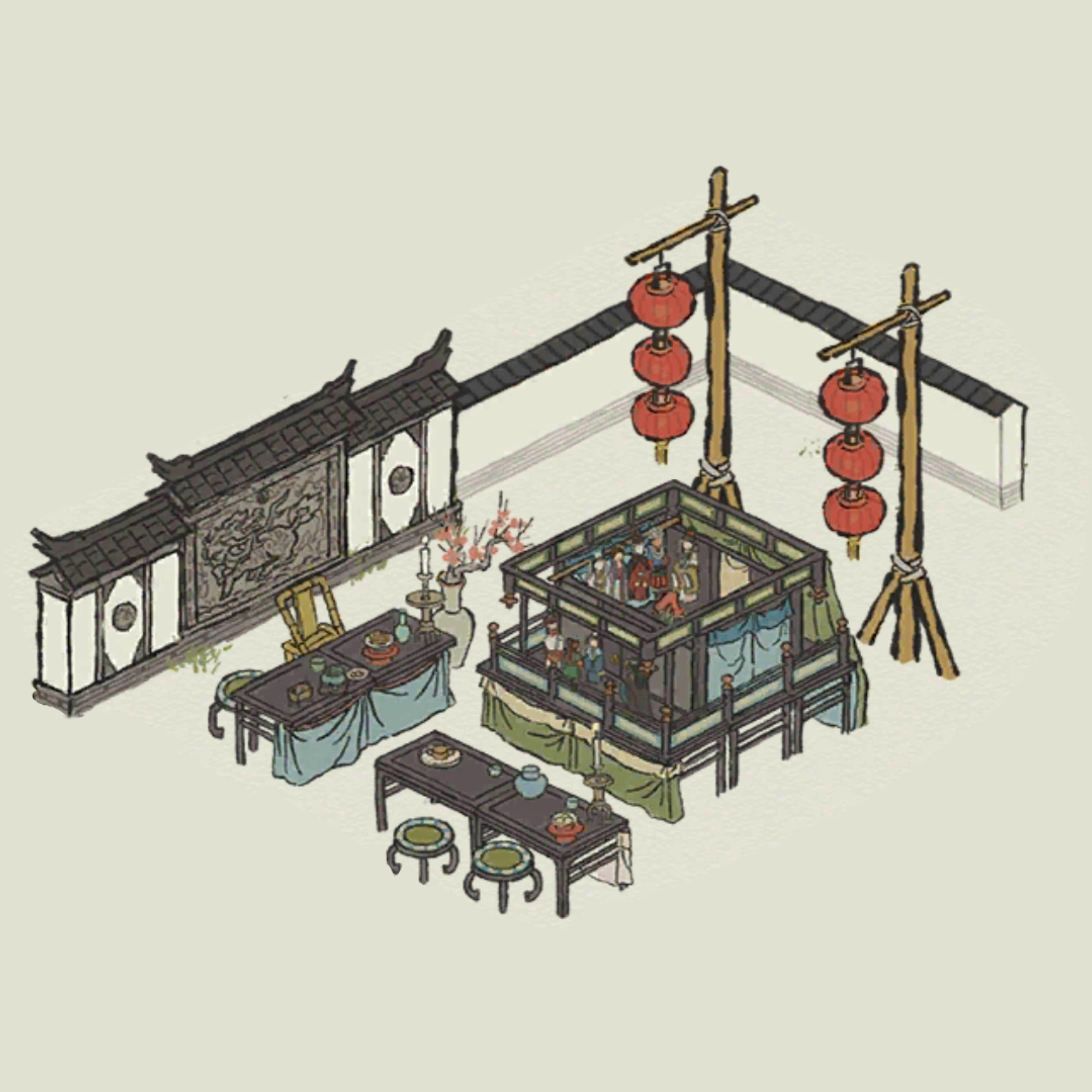蹲一波肯爷建筑和建筑画轴,再完善一下空地,营造一条真正的十里花灯大街~