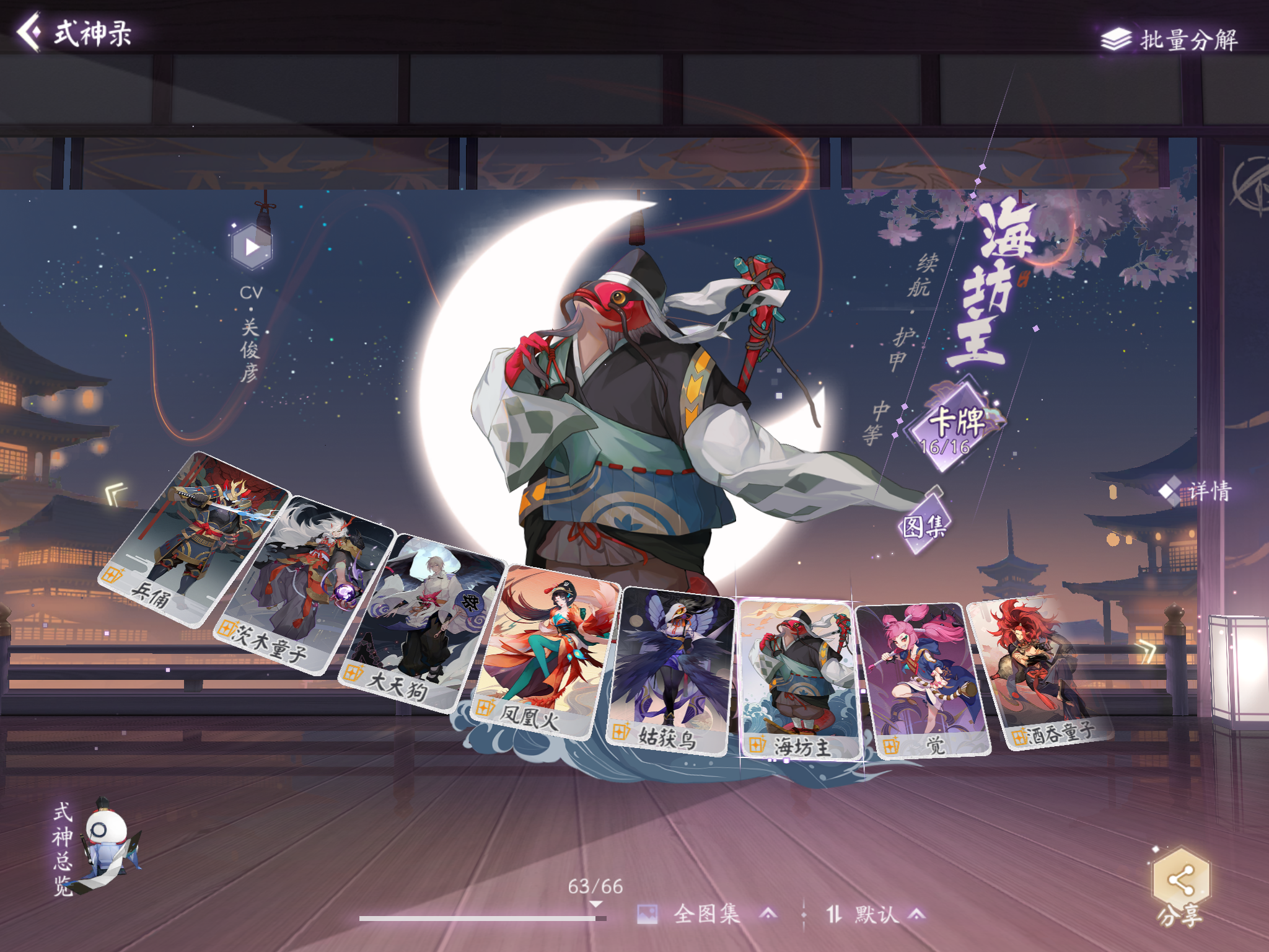 解场,蹭血,清场都很强的式神,在中速队中一般是副c的角色。