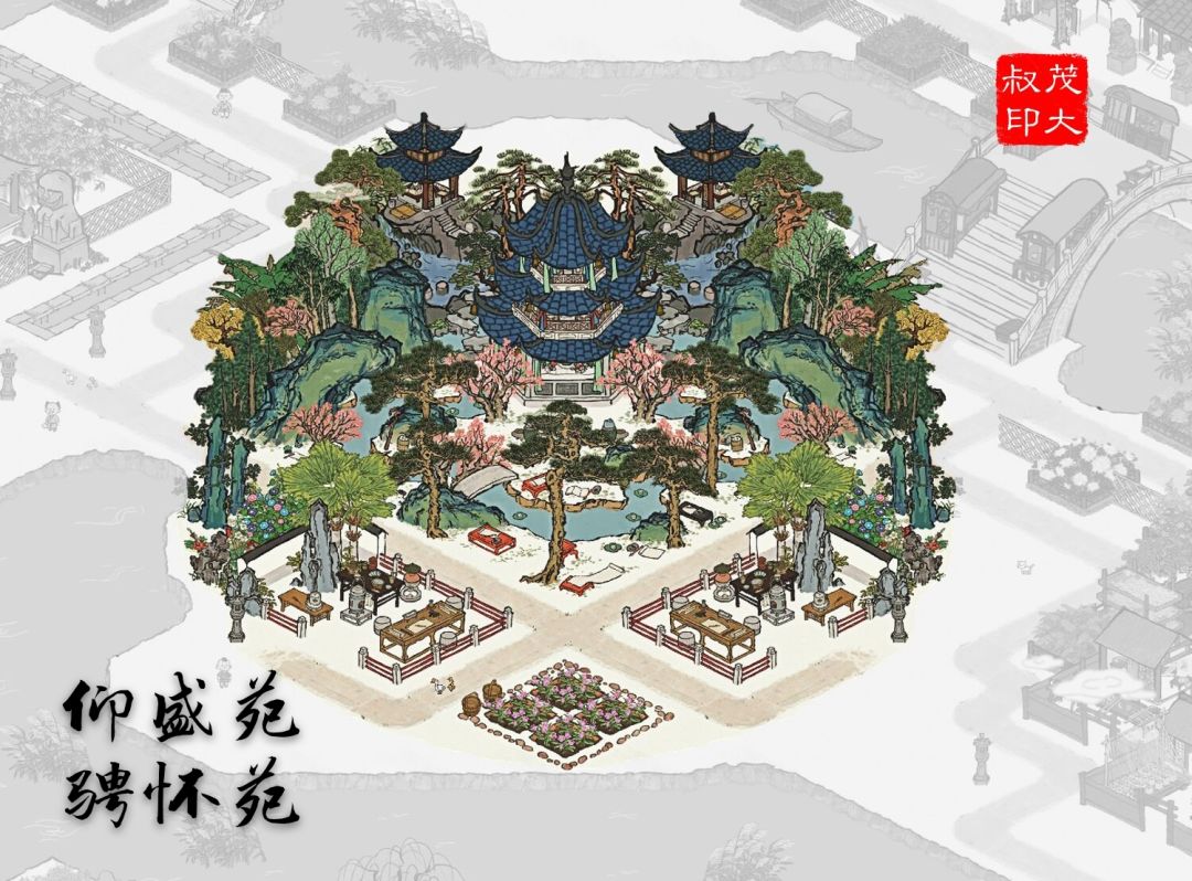 接着是3组非对称园林布局,用来摆放不适合对称布局(中间有水洼)的大块空地,兼具处理官府,苏州东园这俩钉子户