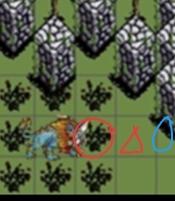 技巧:下图画红色圆圈的位置打标桩或精耕地。三角的位置放个小石头。后方蓝色位置放阻拦物(最好是可拆的)