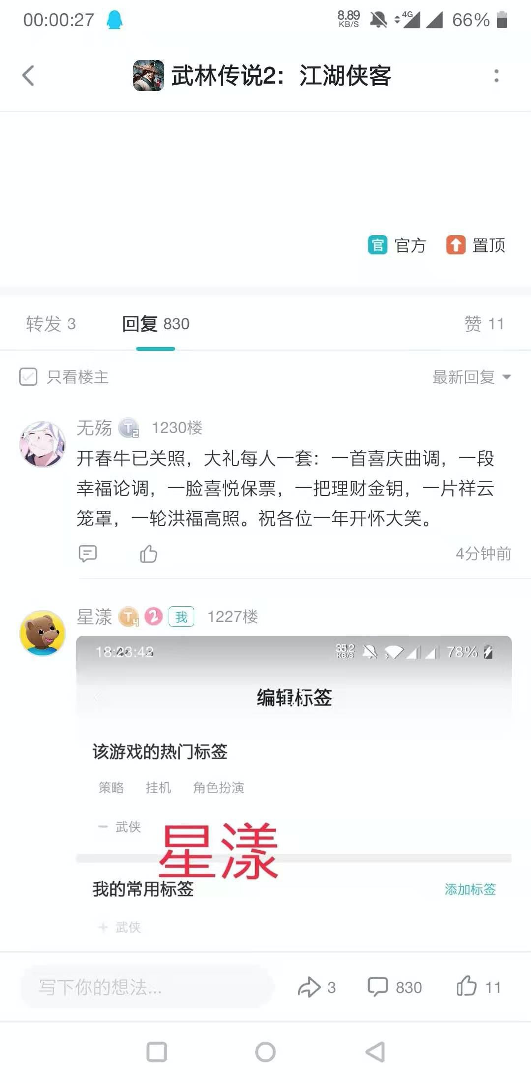 发帖活动的抽奖在3月3日17:30进行,抽奖视频如下: