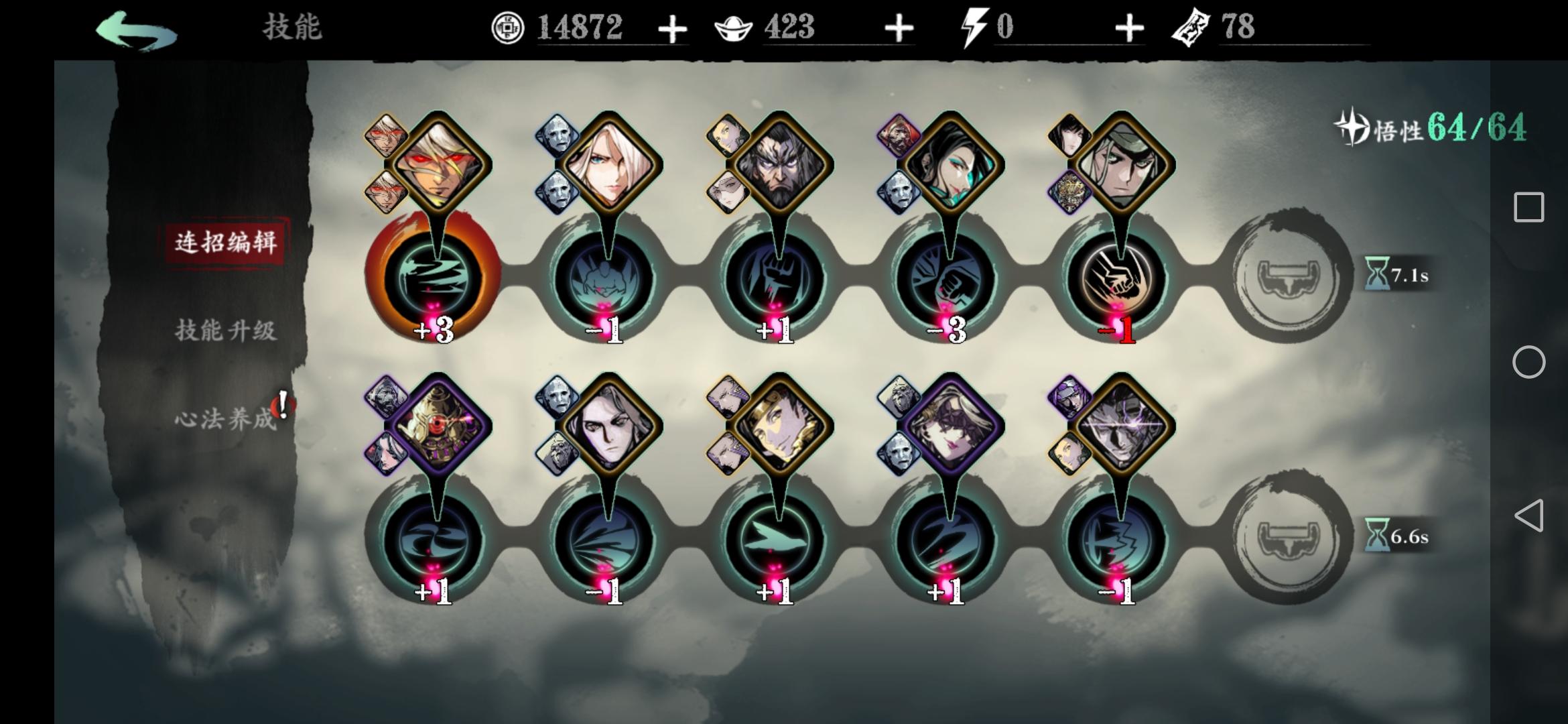 先上图,首先先建几个号,抽奖,其他无所谓,只要出了魔宝就可以开始了,不用紫火都可以,然后邪后,黑白,诛邪套是必送的,魔人看脸,有无看个人手气,现在开始讲重点,有了这些套路心法,一定不要升紫火,等你打无尽的时候,百分百心法不够,这些重复的心法就可以替换了,保证你战力不会掉,所以全部黄六火就可以,然后是装备,简单,就是10龙,加狂龙,10龙加混沌,两套,武器可以传说或者套装,重头戏来了,10龙重要的是什么,是心法,只要你把第二和第三幅心法全部换成武学心法,攻击力加的是很恐怖的而且只要蓝色心法就可以了,根本就不需要紫色的,蓝色的60级一个就加68的攻击力,紫色的也就是70,不过紫色的升阶,但是那是土豪玩的,因为两套10的副心法,要40个武学心法,要是弄紫色的,我们不配,哈哈,蓝色的就简单,就是去裂缝刷抽奖券,很容易40个,这样全部满了,你现在至少5000多的攻击力了,最后说印刻,很多人用五圣,说白了也是土豪玩的,五圣的印刻和鞋子是重复的,你要刷到什么时候才能全部激活,而且,我们是平民,白嫖,不用混搭,要五圣干嘛,而且山神伤免超级多,可以吧黑白的负面减掉,然后我看了一下全部印刻,最后按我图上面的激活,你所有的印刻,就全部都可以用掉,不会出现重复,而且强化小妹那里,可以每天用钱买几十个印刻,成型非常的快,还有很多人说强化没材料,我那么多强化16,材料都用不完,根本不缺,在卖装备的那边有个兑换,一个紫色的可以兑换五个强化材料,只会缺钱,不会缺材料的,基本上平民就是这个套路了,说实在话,游戏还可以,就是策划太坑了