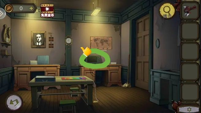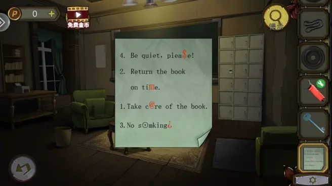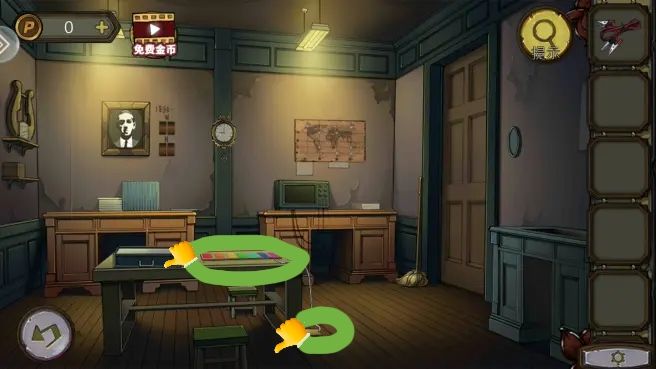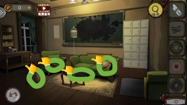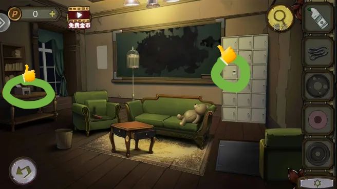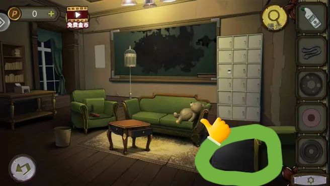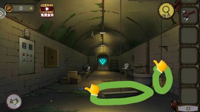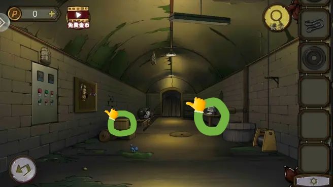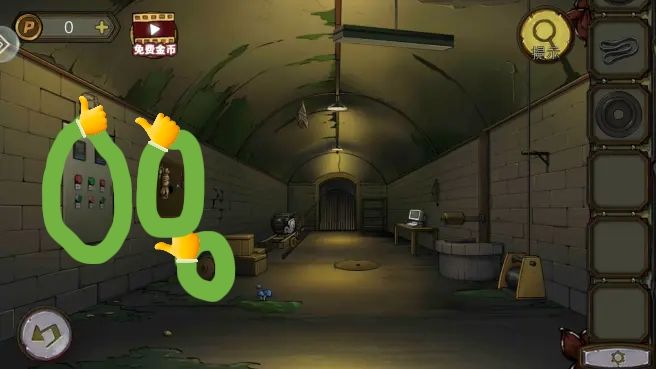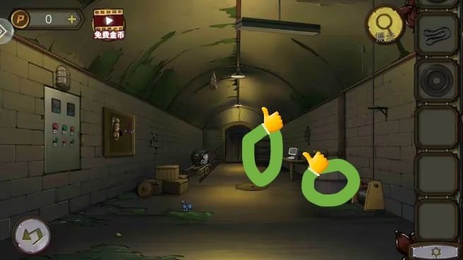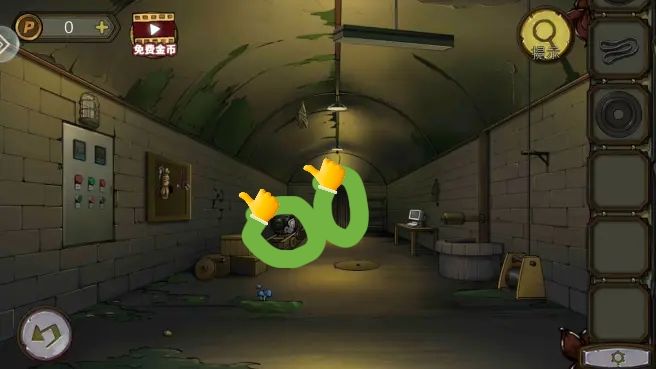 根据守则上的序号和符号,打开笼子,拿到。把放到书柜上,拿到绿色按钮。组合角磨机转子,打开沙发下的暗门,进防空洞。