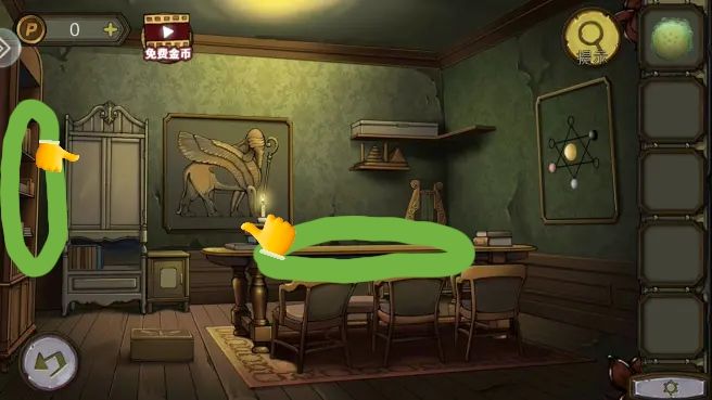 星球模型放在中间台子上,在太阳中心拿到蓝色宝石。按照星球模型的位置,把宝石放进墙上机关,拿到古卷秘籍。本章攻略完