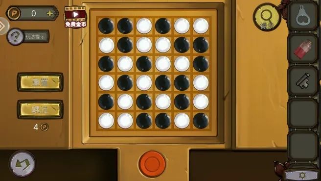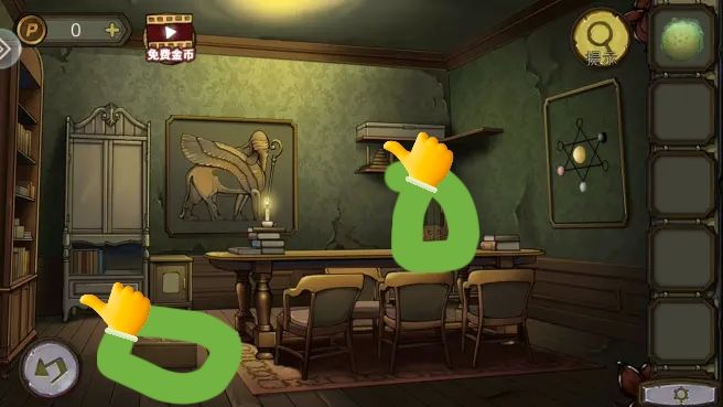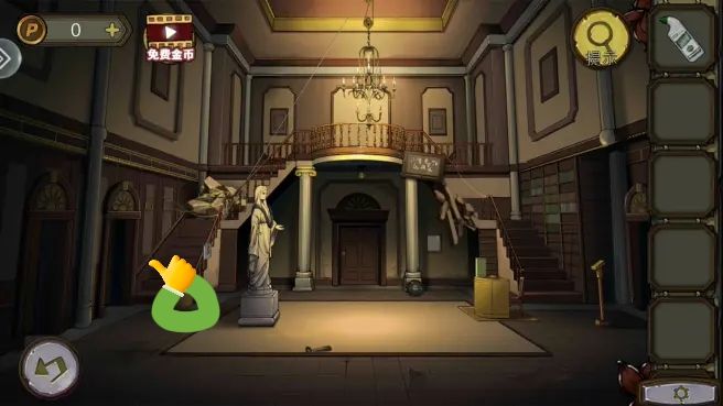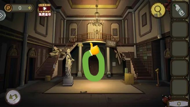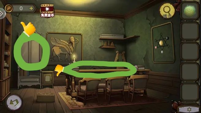 解开柱子下的机关,拿到铜印,放画上,调整位置得到密码。打开书上的锁,拿到鸟头骨