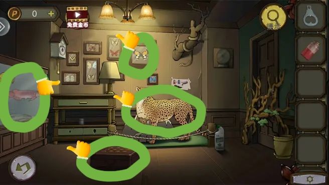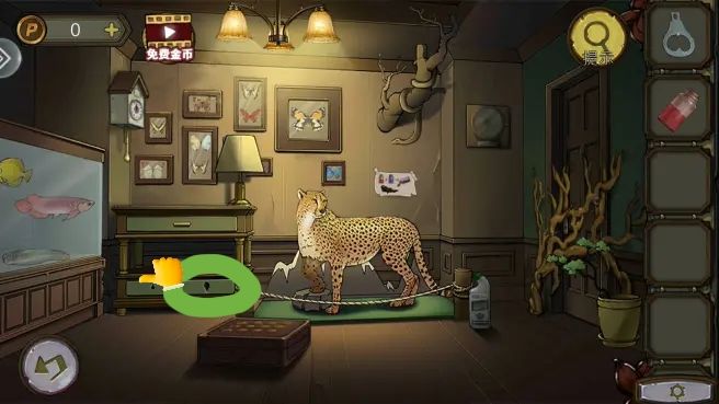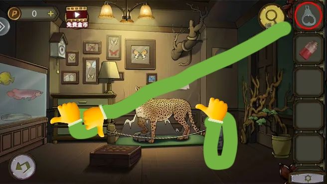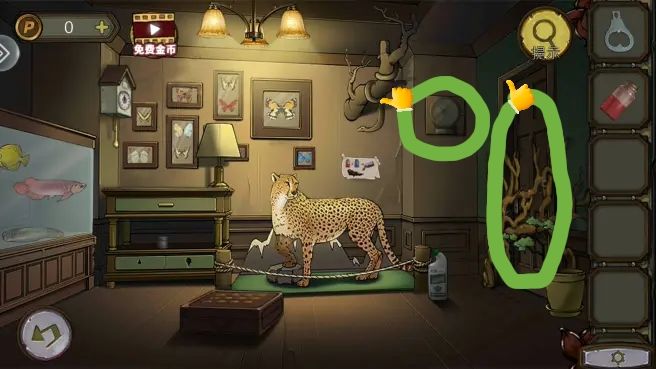 根据豹子、蝴蝶和鱼缸里的眼睛图案,打开盒子,拿到电池