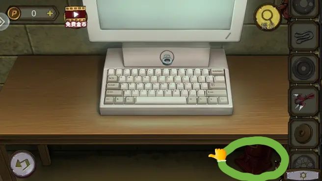 打字机边上拿到钥匙,打开柜子,拿到红色按钮
