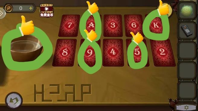 墨水倒入碗里出现“AK95”,翻桌上对应的牌,“AK95”对应的符号打开箱子,拿到权杖