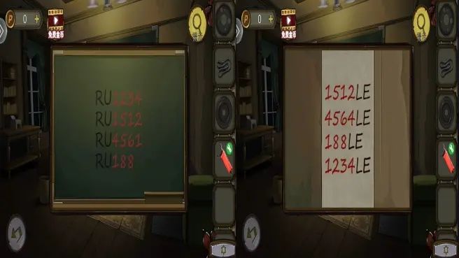 根据桌上的图案和柜子上的提示,打开柜子,拿到墨水。(密码4238,思路:根据柜子上的提示,把桌子上的图案的上半部往左移动。)
