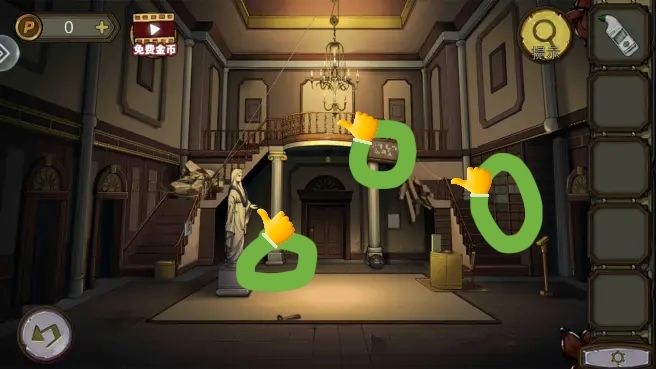 铜勺 齿轮 传送带。解开楼梯机关,吊灯掉下来拿到蜡烛