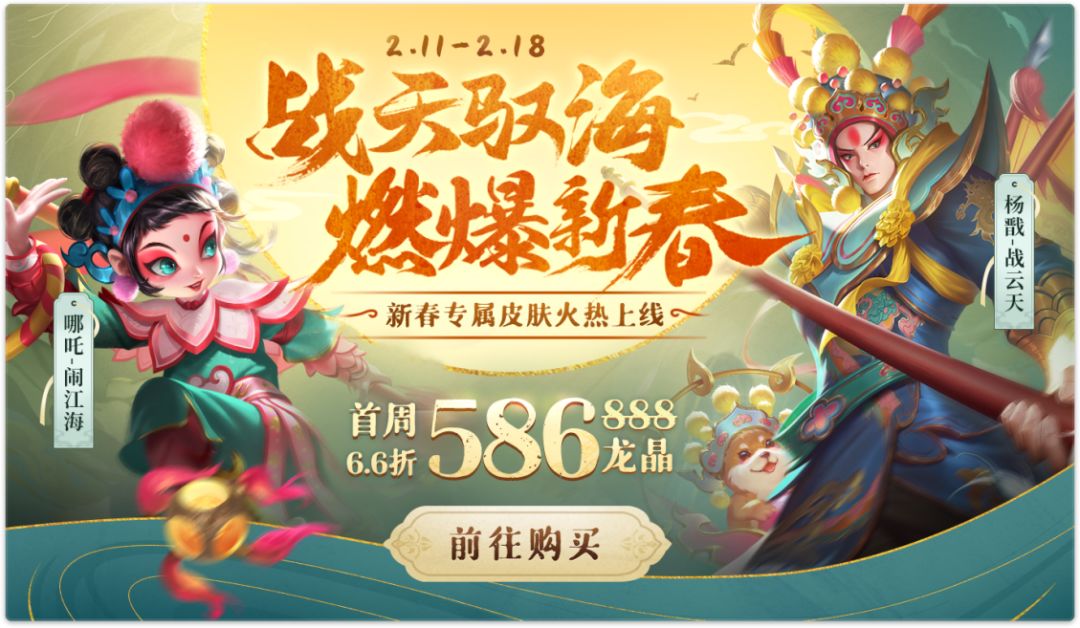 新春到,好运来,京剧皮肤惊喜上线! 限时6.6折 出售!收集2款新年主题皮肤,赢得新春击败特效!