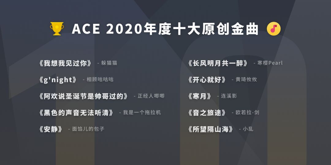 最后,让我们来揭晓【ACE社区2020十大原创金曲】叭!鼓掌撒花!