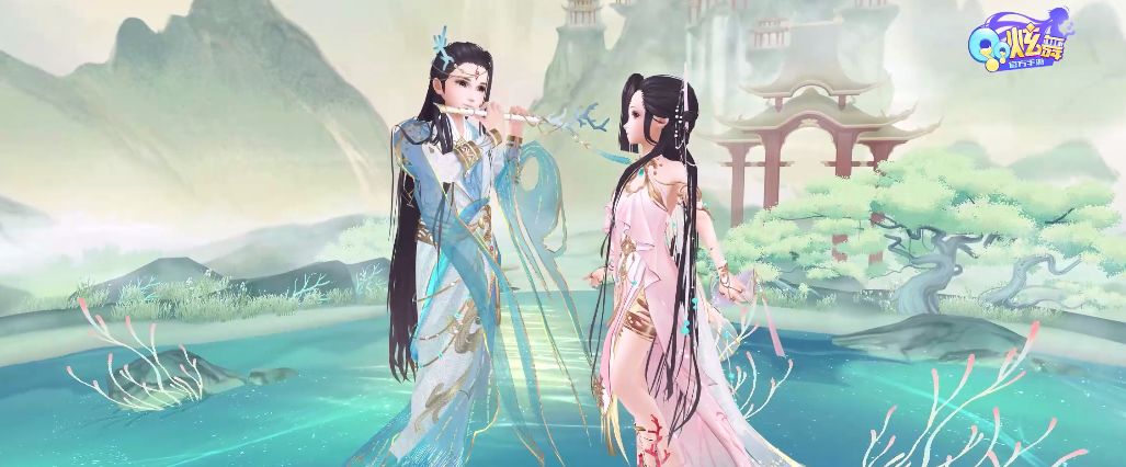 在变身前,男生选用最能代表海洋的蓝色作为服饰配色,搭配鱼骨笛凸显翩翩乐师形象,在变身后,和女性鲛人选用蓝色鱼尾,达到视觉统一。