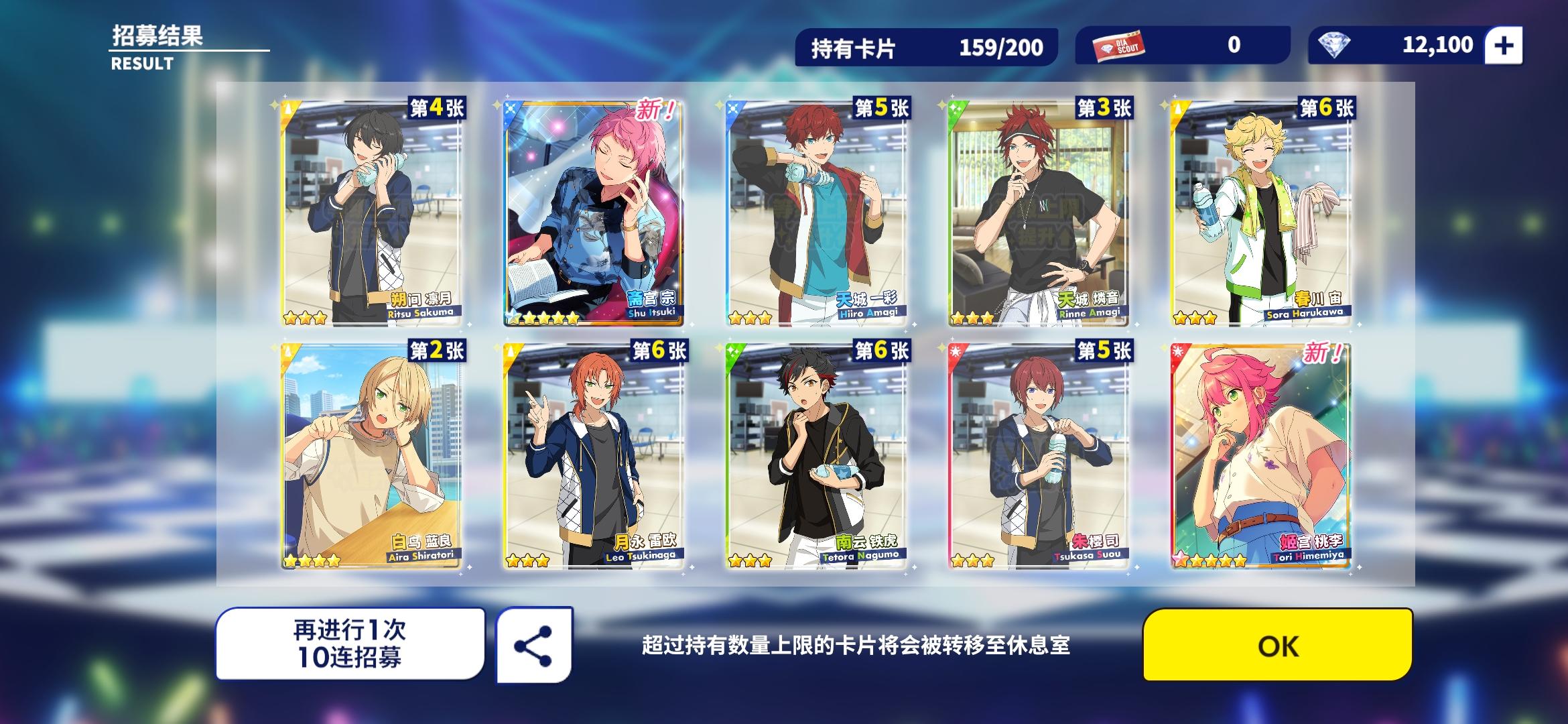 从汽车展览会活动以后A了一阵想着新年活动开了上来看看,结果40抽4个活动白送的10连又出一个天城哥哥,本来5星卡只有一排的今天出的加上活动白送的一个明星直接变两排了,真是新年新气象哎嘿
