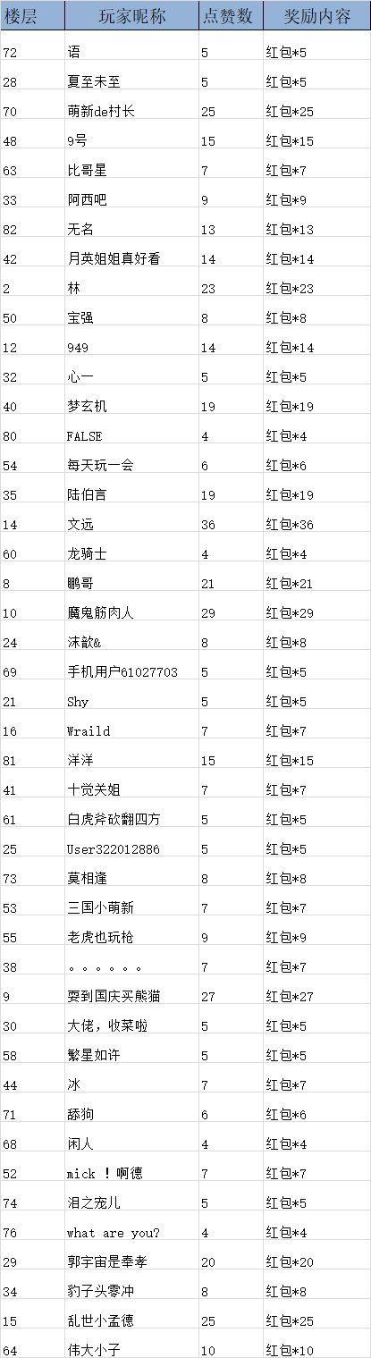 活动结束后7个工作日内,会在此帖中公布获奖名单并通过邮件的形式发放奖励,还请各位主公多多关注!