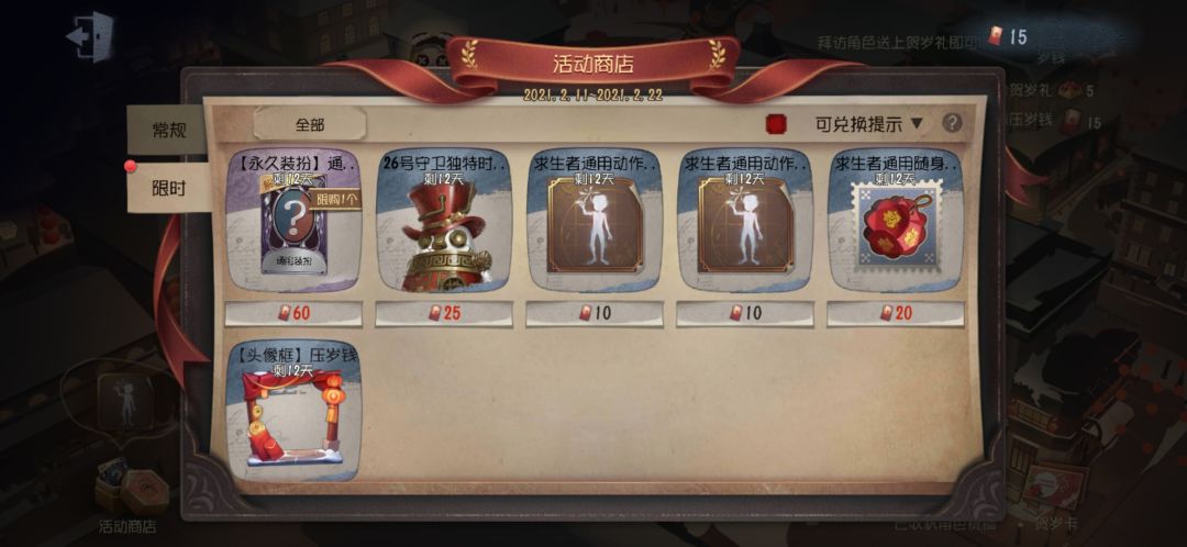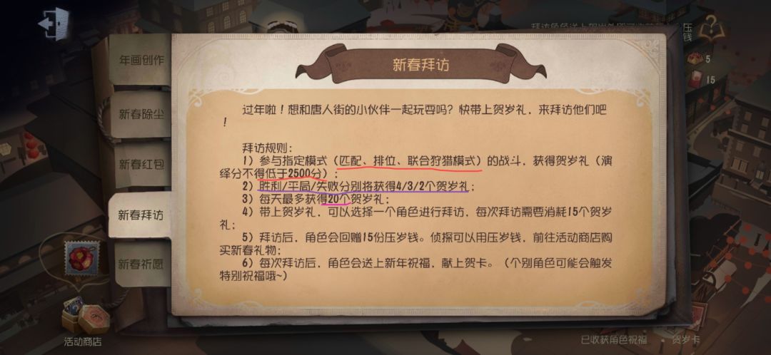 ③胜利/平局/失败分班获得2/3/4个贺岁礼。