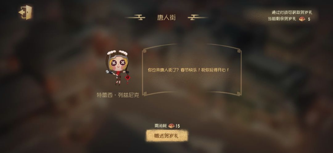 在街上点击自己喜欢的角色赠送贺岁礼即可获得压岁钱,压岁钱可以用来兑换紫皮卡等物品。
