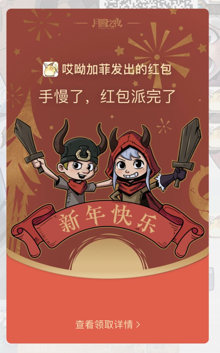 看到别的小朋友都有自己的红包皮,美术小姐姐也赶紧给咱们定制了《月圆之夜》的专属红包封皮,扫描下方二维码即可领取~希望它能陪伴卡牌大师度过一个完美的春节假期~