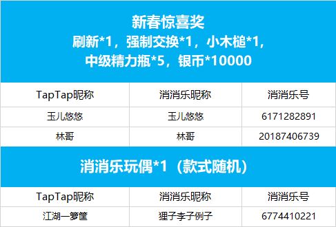 参与活动的有效评论每达到20个,随机抽选1位小村民获得:刷新*1,强制交换*1,小木槌*1,中级精力瓶*5,银币*10000。并再随机抽选1位小村民送出:消消乐玩偶*1(款式随机)