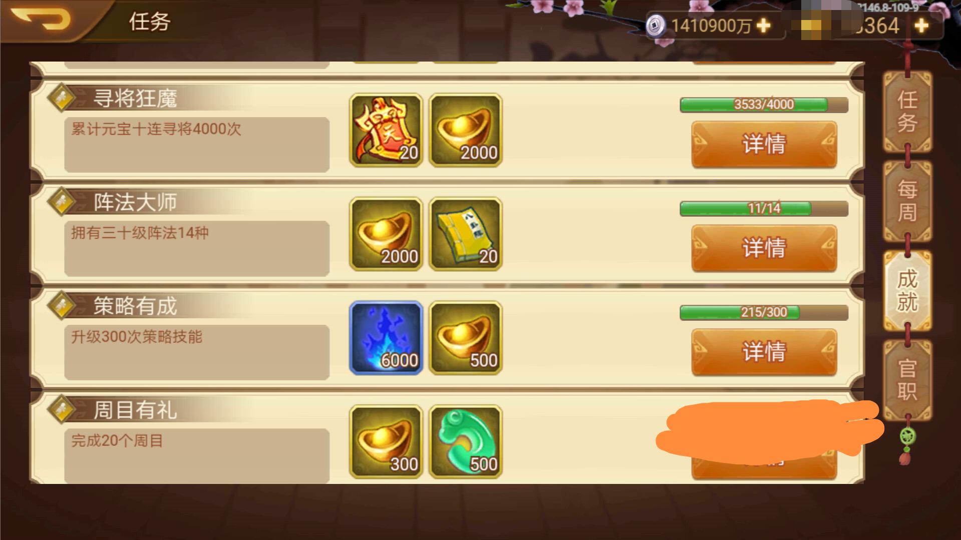 三年差五天老玩家能白嫖的魂都嫖了,大部分参考论坛大佬们的攻略,小部分不符合自身实际偶尔小创新,觉醒魂能收的都收了,所有副本只差九州左慈那个上届,听说靠反能够过,不过需要时间,暂时不考虑去,不为什么,就因为懒
